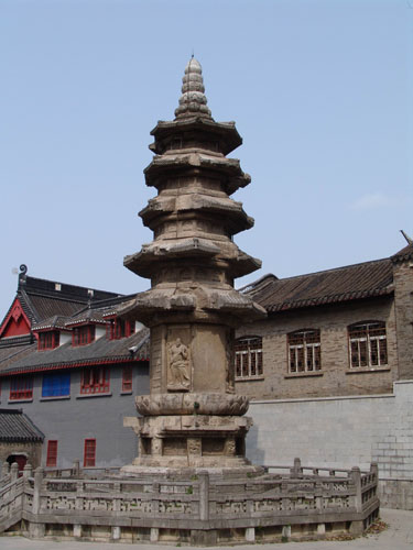 栖霞山舍利塔:建于隋文帝仁寿元年至唐高祖武德四年(公元六零一至六二一年),历二十载始竣工。在南京市东北栖霞山麓栖霞寺后。近曾掘出唐式卐字纹的栏杆,与云冈壁画相同。