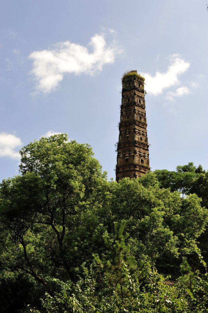 天台山国清寺塔隋文帝开皇十八年(公元五九八年)敕为智觊禅师所建,大业元年乙丑(公元六零五年)赐国清寺额,塔亦名国清寺塔。在今浙江省天台县北天台山腰,砖造六棱九级,今所存者,系宋代重建,规模一本于隋。
