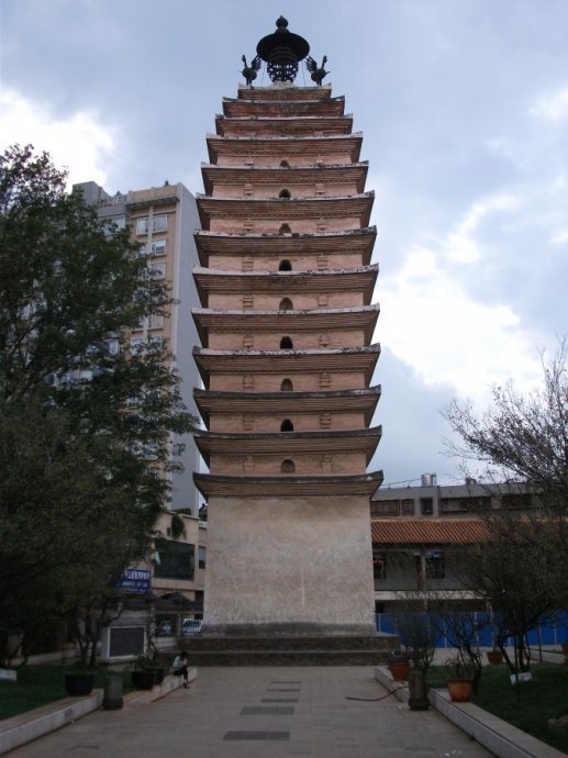 昆明东西塔:唐太宗贞观中(公元六二七至六二九年)尉迟敬德所建。在今云南省昆明城南,凡四角十三层,东西两塔相对立。