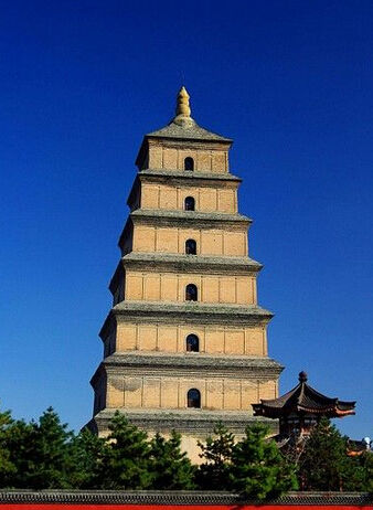 西安大雁塔:唐太宗贞观三年己丑(公元六二九年)长安宫城南建大慈恩寺,造砖浮图,纳藏释玄奘所取回的西域佛经,名雁塔,凡七级,耸三百尺。塔下有《圣教序碑》,是唐太宗叙述玄奘法师至西域求经译布中夏之事,又书法名家褚遂良书。后有高宗在青宫所作《述圣记》,末附玄奘所译《心经》,弘福寺沙门怀仁集王羲之草书以勒石。兴教寺玄奘塔:唐文宗开成年间(公元八三六至八四0年)建,砖造,在陕西西安。