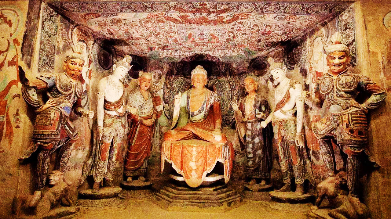 隋唐年代典型的洞窟形制是方形平面的覆斗顶窟,窟内空间开敞,改变了先前中心塔柱窟狭窄、神秘的布局。塑像安置在壁面上开凿的大龛里,唐末在窟中央设方形坛,把塑像摆在坛上。