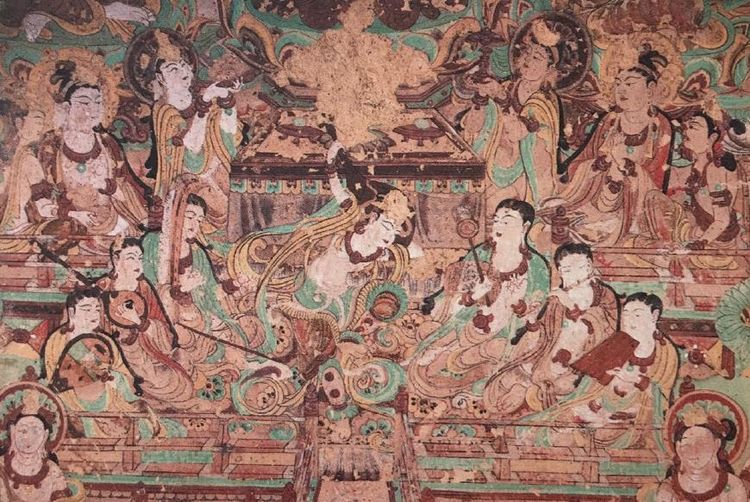 隋唐时期的敦煌壁画与北朝大相径庭。很少有在思想主旨上表达悲苦绝望、牺牲自我的,大多表达的是追求佛国世界的喜悦与美好,这种表达在经变画中占了主要位置。这是唐代社会经济繁荣,政治开明,人民热爱新生活的表现。另外新涌现出的还有瑞像图、历史人物画和佛教感应故事画等。