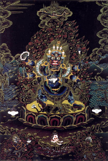 大黑天(梵名Mahakala),密教守护神之一。音译为摩诃迦逻、奠诃哥罗,意译为大黑或大时,又称摩诃迦神,或摩诃迦罗神、大黑神、大黑天神、嘛哈嘎拉。