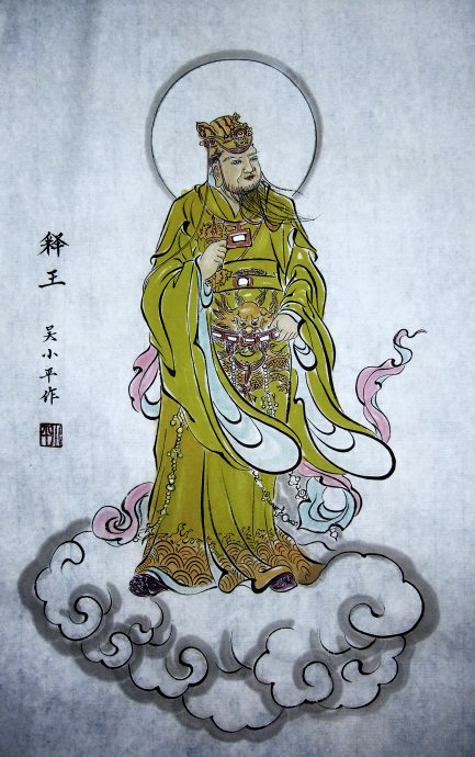 十三,释王三十三,色白红,左手安腰,右手持金刚杵。释王,即天帝释,姓释迦,又称帝释天,忉利天(即三十三天)之主。观音三十二应身中第六为帝释应。