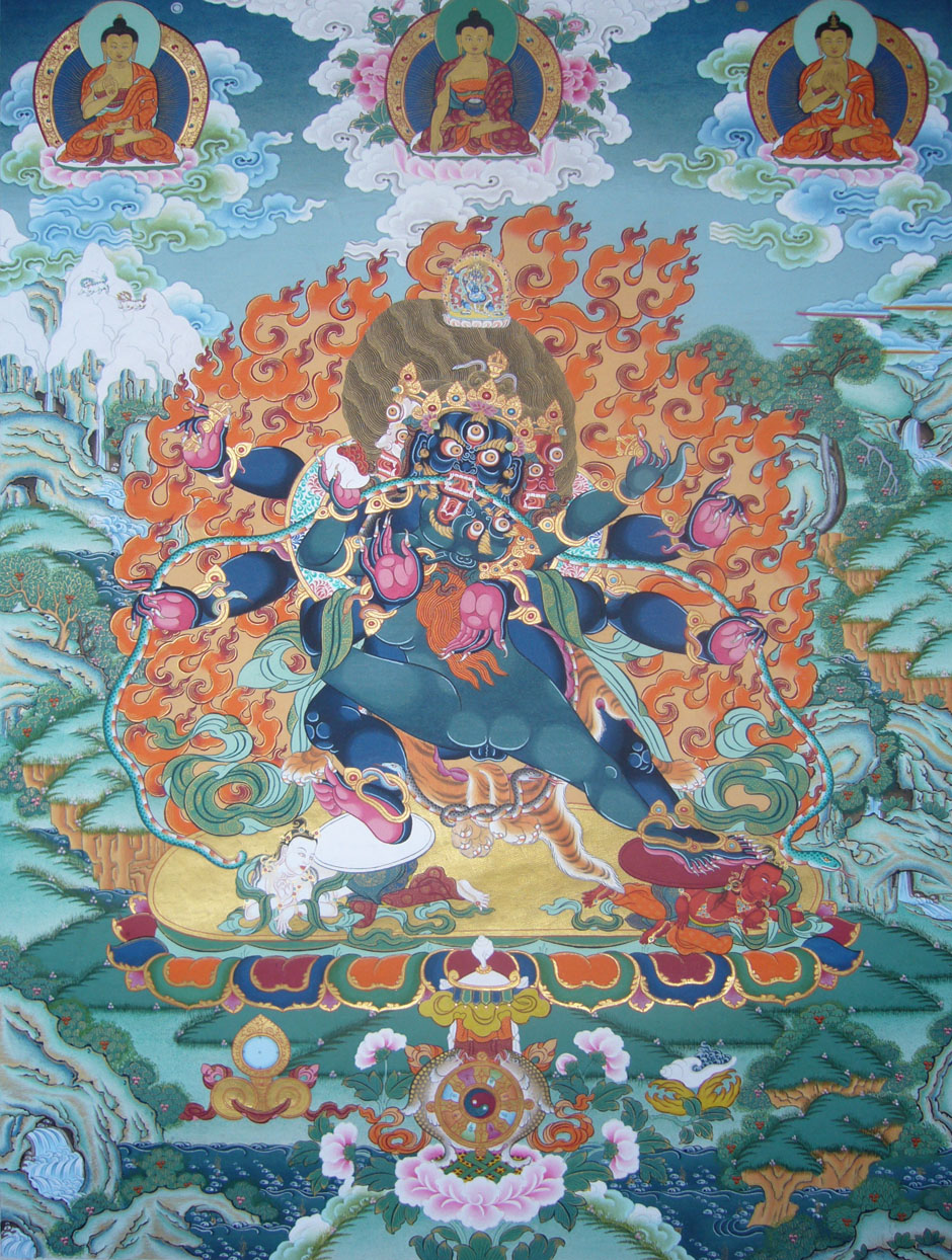 金刚手菩萨,又称搪金刚、执金刚主、持金刚手、秘密主、金刚手药叉将。原本泛指执持金刚杵的菩萨,又特别专指密迹金刚力士。如《增一阿含经》卷二十二中说:密迹金刚力士在如来后面,手执金刚杵。《大宝积经》卷八《密迹金刚力士会》中云:金刚力士,名为密迹,立世尊右方,手执金刚杵。