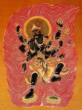 军荼利明王意意译为瓶,在密教里,瓶是甘露的象征,所以又译作甘露军荼利,是密教五大明王之一,为南方宝生佛的教令轮身(忿怒身)。