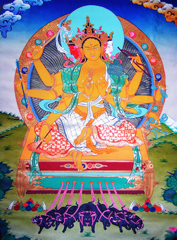 摩利支天(梵名Marici),又音译为摩里支天、末利支天,意译作积光、威光、阳焰等名。是一位能够自我隐形而为众生除灭障难、施予利益的女神。虽然属于天部,但有时也被称为摩利支天菩萨或大摩里支菩萨。