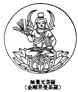 无量光菩萨音译为阿弭多钵罗婆野,又作甘露光菩萨,密号大明金刚或离染金刚,此尊以无量的智慧光明降伏三惑,遍照十方,故称无量光。