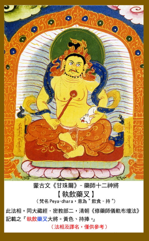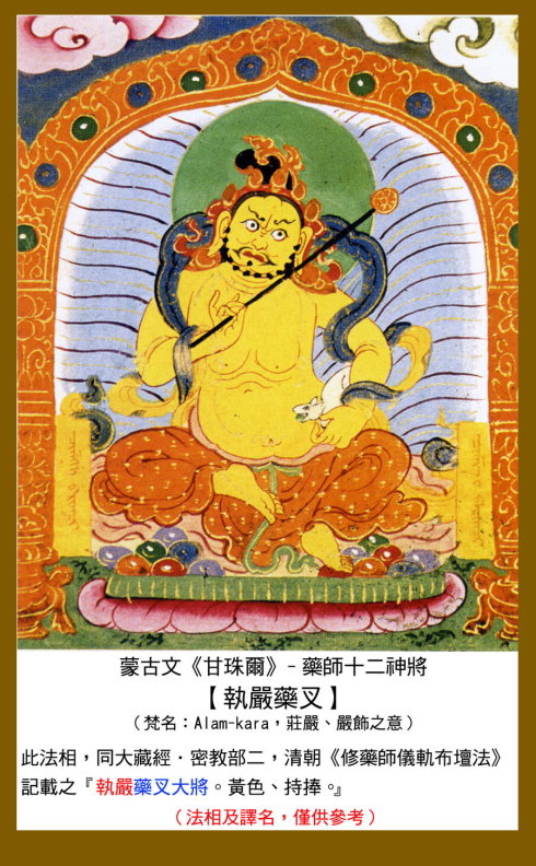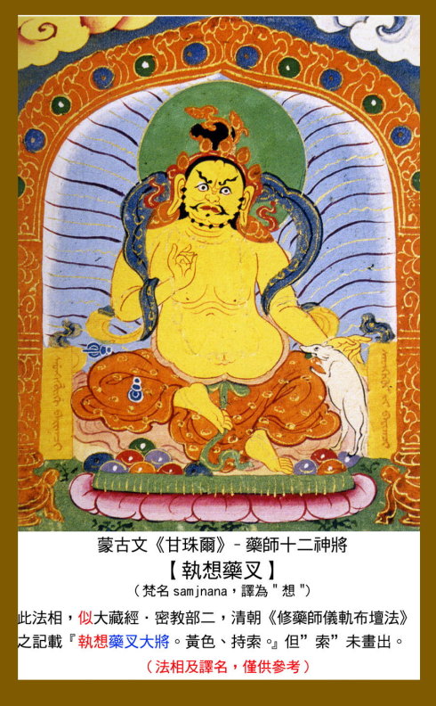 根据《药师观行仪轨》记载,这十二位誓愿护持药师法门、饶益众生的神将,名称如次: