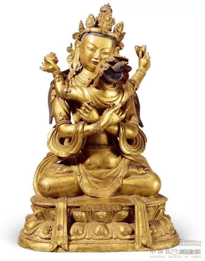 明妃为般若佛母,佛母双手分持鼓与嘎巴拉碗