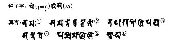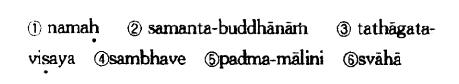 ①南么 ②三曼多勃驮喃 ③怛他蘖多微洒也 ④三婆吠 ⑤钵昙摩摩履你 ⑥莎诃