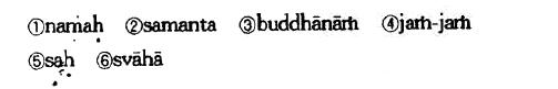 ①南么 ②三曼多 ③勃驮喃 ④髯髯 ⑤索 ⑥莎诃