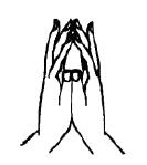 大势至菩萨手印:虚心合掌,十指内弯成圆的状态,如未开的莲花,继之把两中指微微地打开,即是未敷莲花印。虚心合掌乃至未敷莲花,宛如如来之宝箧,然开敷却如合。