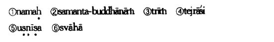 ①襄莫 ②三满多没驮喃 ③怛陵 ④帝儒罗施 ⑤邬瑟扼洒 ⑥娑缚贺