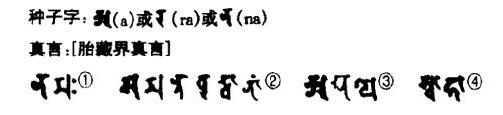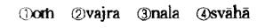 ①唵 ②缚日罗 ③曩攞 ④娑缚贺