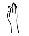 火天手印:左手按于腰,右掌展开,将拇指弯曲附着干掌内,食指中节微弯。