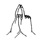 6.金刚法菩萨手印(四印会):此为金刚界曼荼罗四印会中金刚法菩萨之手印。结法为双手外缚,中指伸如莲花形。