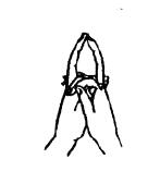 5.金刚法菩萨手印(三昧耶会):此为金刚法菩萨在金刚界曼荼罗三昧耶会中之手印,结法为外缚,两拇指并立,两食指屈如莲花。