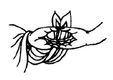 3.智吉祥印二:双手内缚,两拇指、两中指、两小指齐竖合一。真言同前。