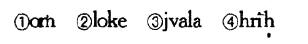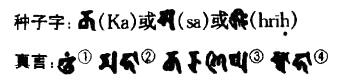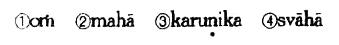①唵 ②摩诃 ③迦噜尼迦 ④娑缚贺
