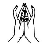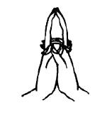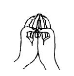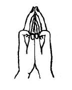 1.文殊菩萨手印(一):两手虚心合掌,中指、无名指交结相持,以两食指置两大拇指上,如钩形。