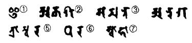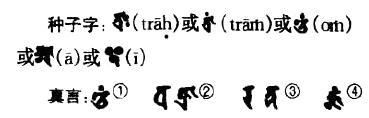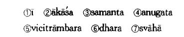 ①伊 ②阿迦奢 ③三曼多 ④奴揭多 ⑤髀质哆㘕么嚩啰 ⑥驮哆 ⑦莎诃(胎藏界)