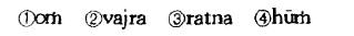①唵 ②嚩日罗 ⑤罗怛曩 ④吽