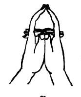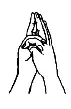 4.虚空藏手印(四):此为胎藏曼荼罗释迦院中虚空藏菩萨之手印,名虚空藏印。结法为虚心合掌,两食指屈在两中指下,拇指入掌中。